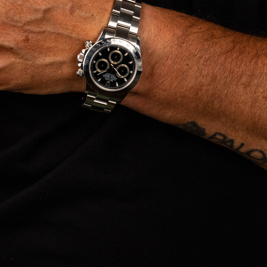 Why we bought it ? The 116520 is already a classic – the first in-house Daytona, pure symmetry, and timeless aesthetics. This black dial version has that perfect mix of stealth and elegance. Prices keep climbing steadily… and you’ll understand why once it’s on your wrist