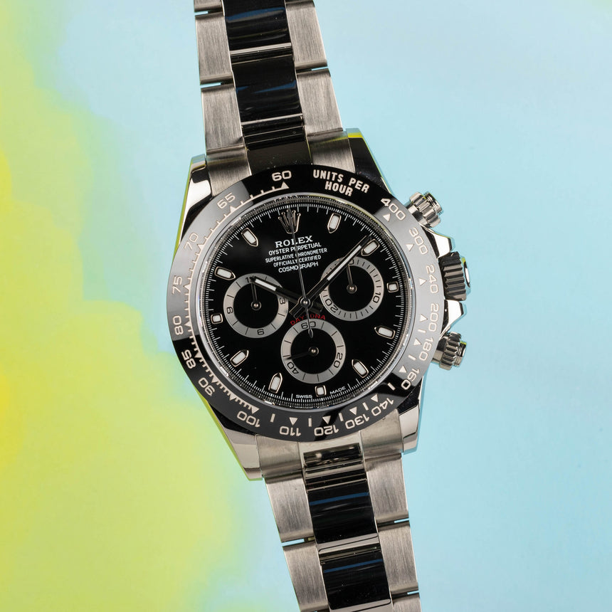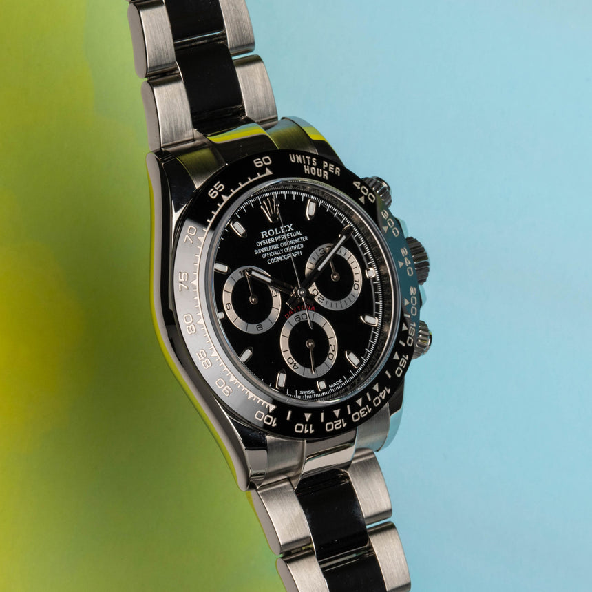 2018 Rolex Daytona with black dial, in steel, ref 116500LN: Like new & full set